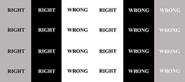 In order to reveal the message of right and wrong, a semiotic project is constructed by using twenty-four images arranging in a six by four format. These images contain only two main words, right and wrong. The background colors are changing instantly from black to white and to gray. In the series, six individual images are repeating in the following format,